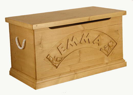 closing mechanism and is finished in an antique wax. This toy box will also look good as a piece of traditional furniture in the home. An ideal Birthday or Christening gift for a child.