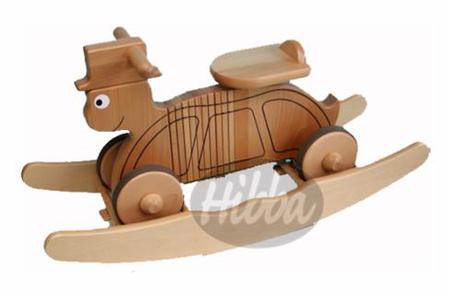 The wooden combi camel is totally unique and superb because it rocks and also has wheels so it can be used as a ride on toy, 2 in 1. When the child is bored of rocking you can very easy remove the turtle from the base so they can use it as a ride on toy. The pictures are not enough to emphasise the true quality of this toy. We know you will fall in love with this when you see the turtle in real life. We have carefully selected this delightful turtle for its ingenious design and sheer quality.