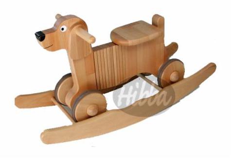 The wooden combi dog is totally unique and superb because it rocks and also has wheels so it can be used as a ride on toy, 2 in 1. When the child is bored of rocking you can very easy remove the dog from the base so they can use it as a ride on toy. The pictures are not enough to emphasise the true quality of this toy. We know you will fall in love with this when you see him in real life.