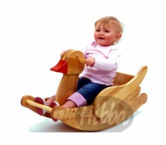 The rocking duck allows the child to sit between the wings of the duck and then gently rock away.