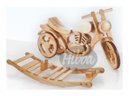 The Hibba Combination Rock and Ride wooden Bike. WOW, this is a superb bike finished to a very high standard. Absolutely stunning, a beautifully crafted sold birch bike. A combination rocking trike. Use it as a rocking toy or take it off the base and ride on it around the house !! The bike will not mark the internal floor of the house. We know it will delight your little bundle of joy and also be a showpiece in your home. This rocking wooden bike can be used as a rocker and also a ride on bike, foot to floor around the house. It has been finished to an exceedingly high quality and specification as it is crafted by hand by master craftsmen. Size: L = 110cm x W = 32cm x H (to seat) = 38.5cm Overall height = 62cm