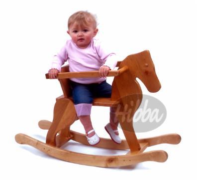 With smaller children you can put them on the seat and then swivel the wooden frame over them to prevent them from falling out, but when they get bigger you can swivel the frame over their head and they can use it as stirrups. A great design.This wonderful Rocking Horse that grows with your child through his toddler years is an asset in any home. The horse is absolutely immaculate and is buffed to a natural soft sheen finish. We are confident that this will be a lifetime investment and a family heirloom for years to come.